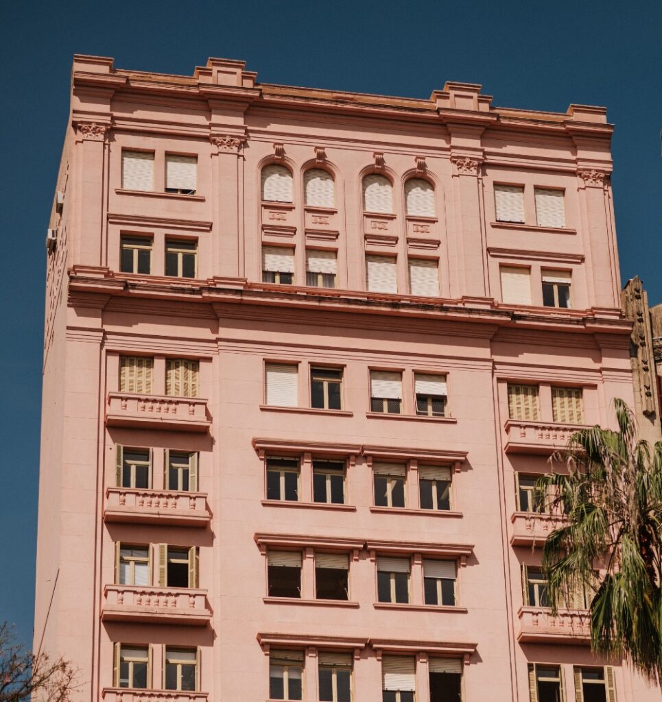 O prédio recebeu o nome originalmente de “Rosado” devido à tonalidade rosada da pintura original.